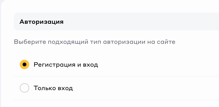 В поле **Авторизация** вы можете выбрать нужный тип авторизации на сайте: